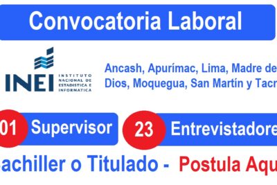 INEI ofrece puestos de trabajo con sueldos desde S/2,300 a los S/2,600